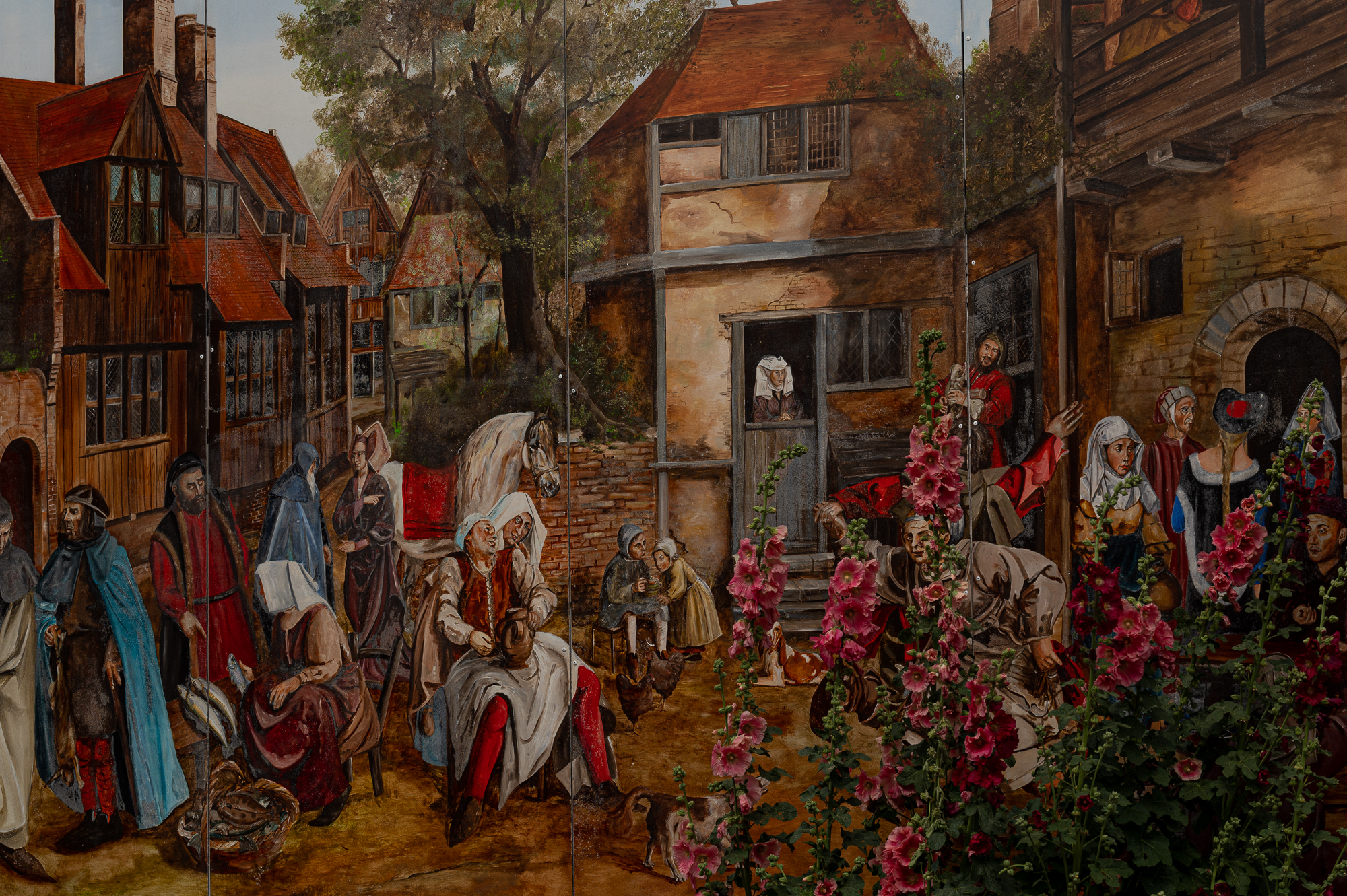 Het Grenslandpad gaat verder onder door de Kaaipoort. Aan de linkerkant na de Kaaipoort vind je een prachtige muurschildering, want als oudste stad van Zeeland, wil je natuurijk deze historie in beeld brengen. Wat een prachtig beeld.