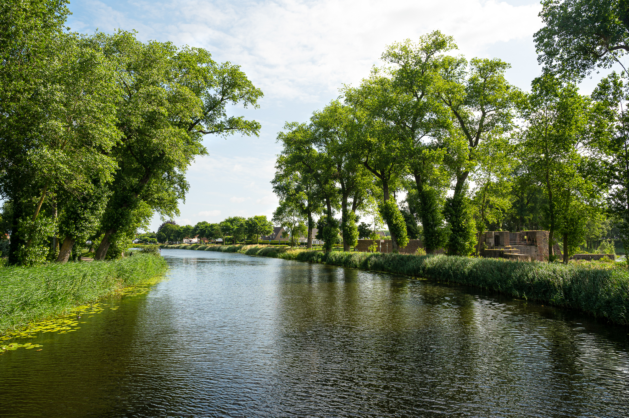 Sluis uit wandelend kom ik zowel andere wandelaars, als fietsers tegen. Een populair stukje Zeeuws-Vlaanderen. Maar dat is ook niet zo gek, want het is prachtig wandelen langs de Damse Vaart onder de statige bomen. Met uitzicht over de omliggende polders rondom Sluis.