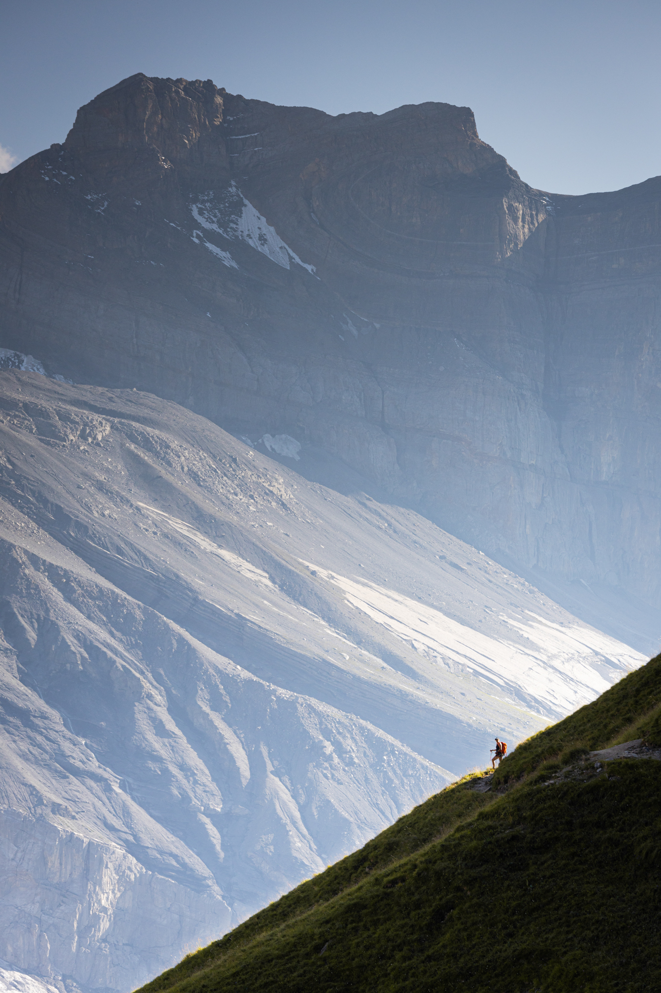 This hike gives you amazing views over the lake. When you get to the hut, you can either continue to the next hut, the Bluemlisalphutte, where you can also spend the night, or you can hike back from here. You have two options, hike back the same way you came in, or head left along the ridge.