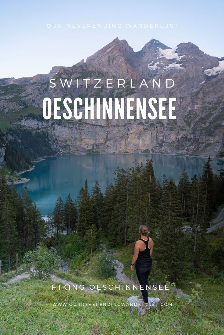 The Oeschinnensee is located in Kandersteg Switzerland.