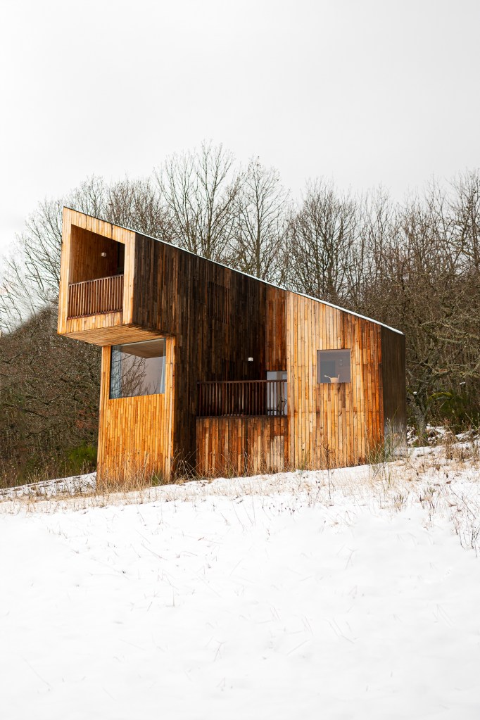 On a private domain in Belgium, you will find this tiny house, the Forest. Where you can take a bath within the forest. The tiny house has room for two people and the cabin is heated by a cosy fire place.